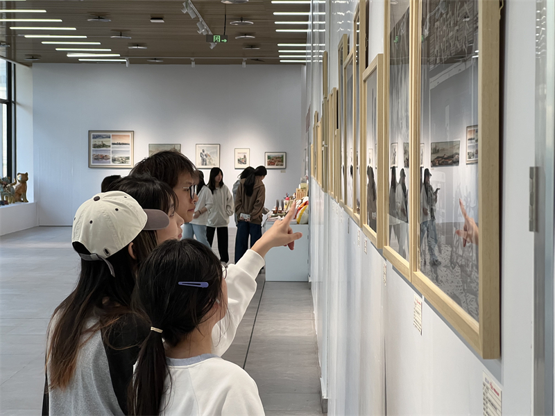 漫步展廳,閩江學院的《閩山閩水物華新 美麗鄉村繪新篇》以彩色畫卷展現鄉村振興的壯美圖景;上海大學以《黃河東渡遺址》作為專門課程任務,突出紅色文化教育,增強文化自信;延安大學的《紅色木刻版畫創作實踐》再現革命年代的崢嶸歲月;喀什大學的《邊疆建設主題設計》則通過現代設計語言詮釋民族團結與邊疆發展的時代主題。“原來思政課可以如此鮮活——當畫筆遇見信仰,執奮斗之‘筆’,繪就強國有我的‘擔當畫卷’,青春才會閃光”,前來參觀的“00后”大學生馮世通在木刻作品《紅色延安》前感慨道。