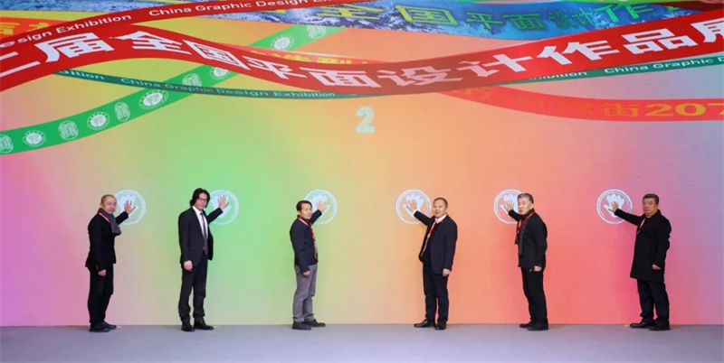 中國美協分黨組成員、副秘書長、一級巡視員朱虹子,吉林藝術學院黨委書記楊寶忠,吉林藝術學院黨委副書記、副院長(主持行政工作)李書春,中國文聯美術藝術中心副主任董竟成,中國美協平面設計藝委會主任、中國美術學院副院長韓緒,吉林省美協主席王建國,吉林藝術學院院領導姚文學、張炳欽、鄒毅,中國文聯美術藝術中心藝委會工作處副處長賀絢絢,中國美協平面設計藝委會副秘書長王子源、委員張犁、高山、張曉東,吉林藝術學院院系負責人宮春潔、徐科銳、張紅梅、劉兆武等,吉林省美協副主席、秘書長高嶺,以及入選作者代表、院校及行業協會代表、吉林藝術學院師生代表參加開幕式。吉林藝術學院設計學院院長金巍主持開幕式。