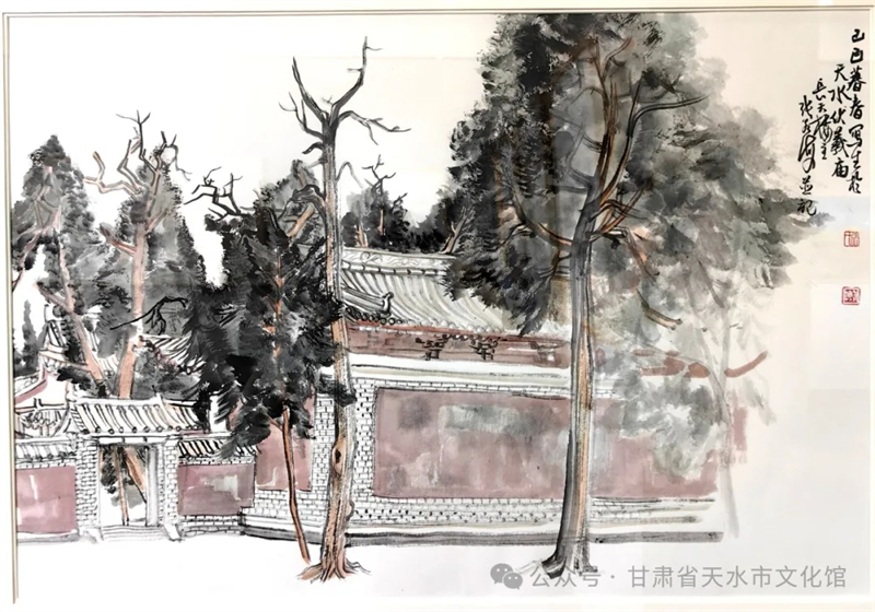 此次展覽,既是三位藝術家對天水山水人文的深情回應,亦是一場藝術語言與地域文化的深度交融。他們以腳步丈量天水的歷史縱深,以筆墨重構天水的文化基因——麥積山石窟的佛國氣象、明清巷陌的煙火記憶、隴山渭水的天然形勝,皆被提煉為獨特的藝術符號,在宣紙、畫布與綜合材料間煥發新生。