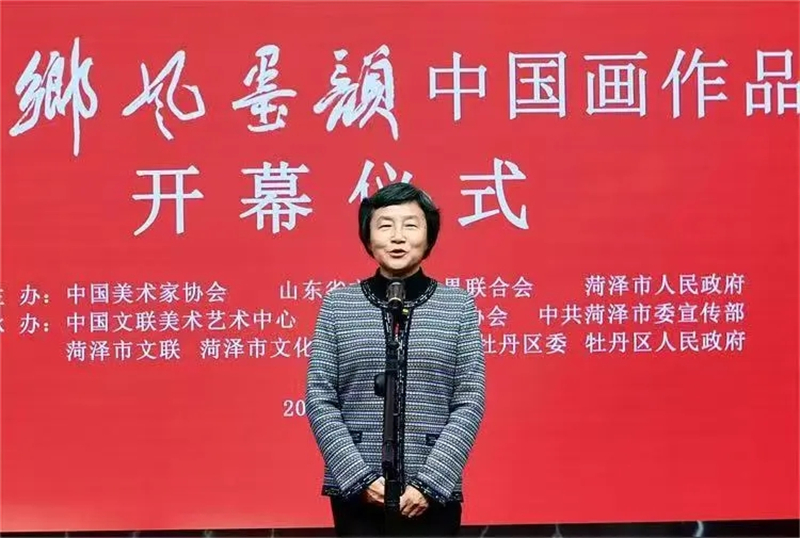 李春英在致辭中表示,“鄉風墨韻”中國畫作品展已成為菏澤建設文化強市、提升城市知名度的重要載體。本屆中國畫作品主題鮮明、題材多元、技法精湛,生動展現了鄉風鄉情、故土情思和發展氣象。菏澤將以本次展覽為契機,持續加強書畫文化陣地建設,廣泛開展美育活動,努力將書畫之鄉的資源優勢轉化為菏澤后來居上的發展優勢。希望廣大藝術家多來菏澤采風創作,用生動的畫筆,宣傳展示菏澤厚重的人文底蘊、良好的生態風貌和蓬勃的發展態勢,為文化強國建設貢獻力量。