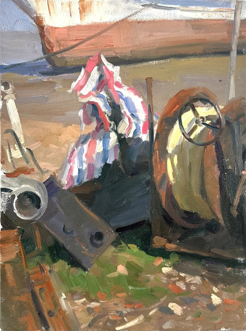 《暖日下的白船》 布面油畫 19×24cm 2025年 于果