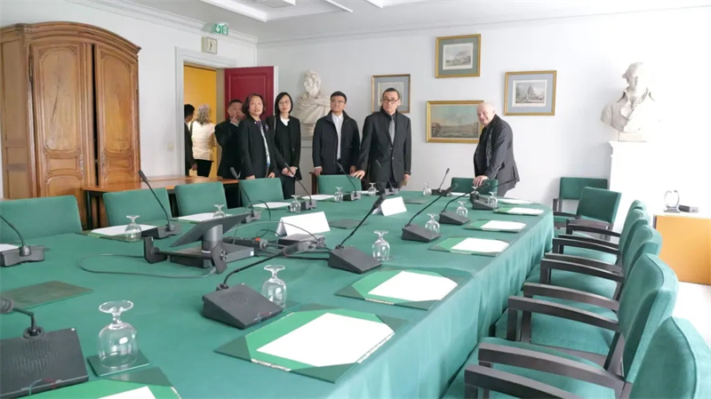 洛朗·珀蒂吉爾首先帶領訪問團參觀了法蘭西學院,并詳細介紹了這座學院的歷史沿革與工作機制。隨后雙方開展了親切務實的座談。
