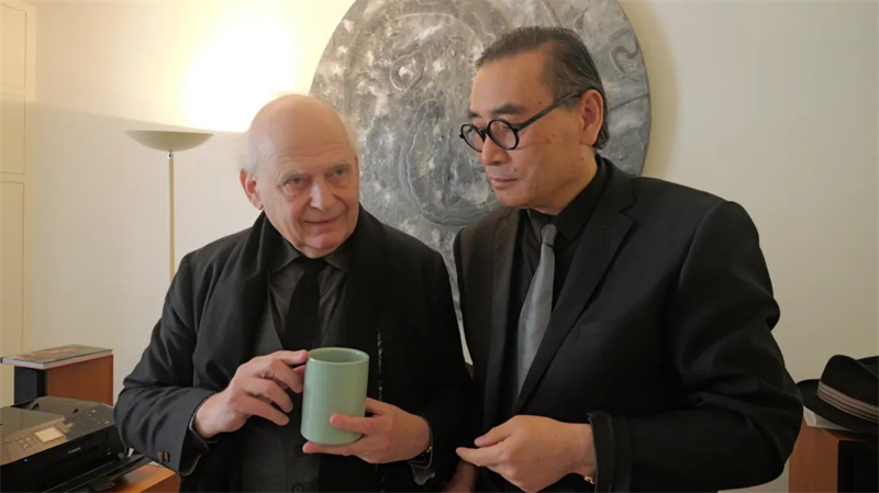 劉萬鳴院長與法蘭西學院藝術院院士、終身秘書長洛朗·珀蒂吉爾交談