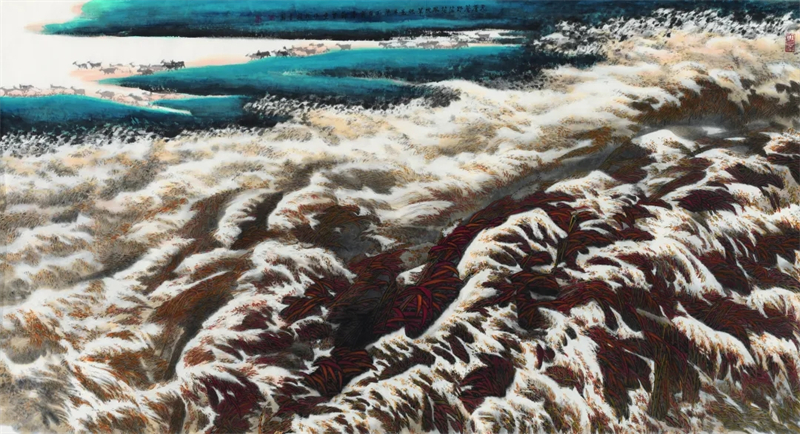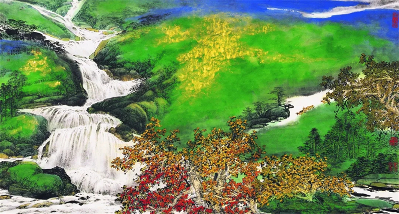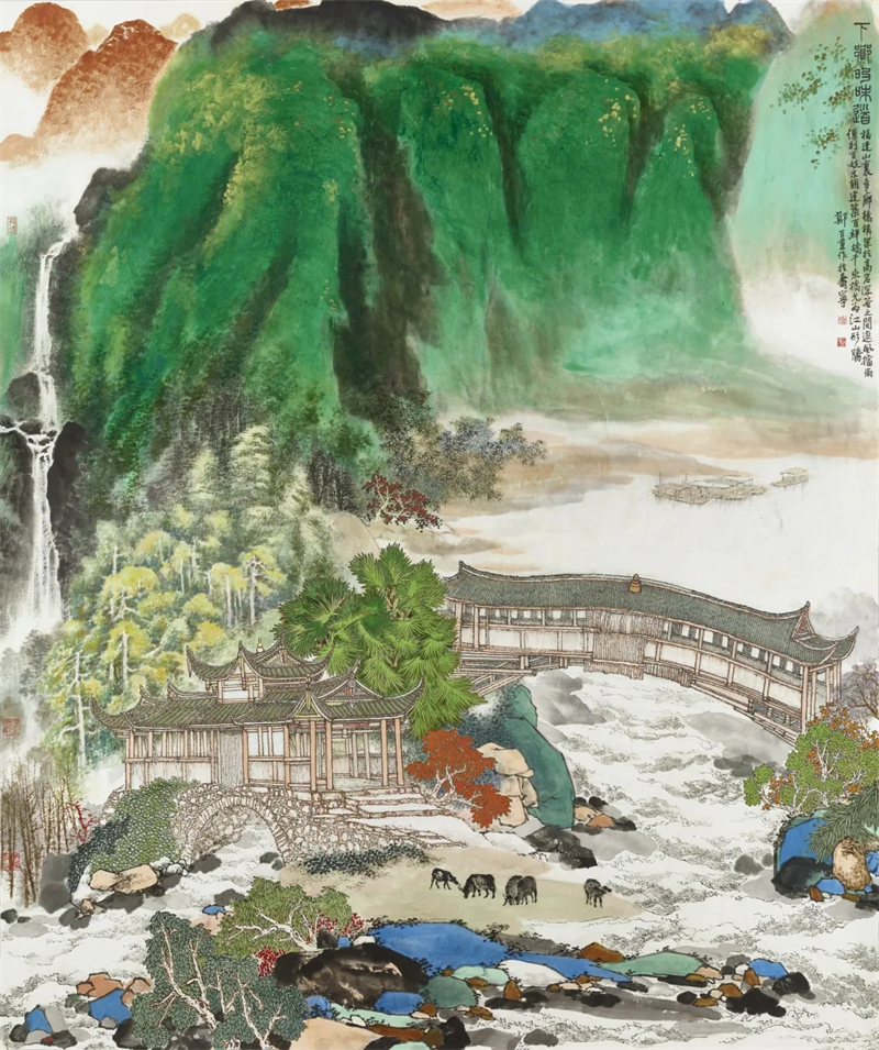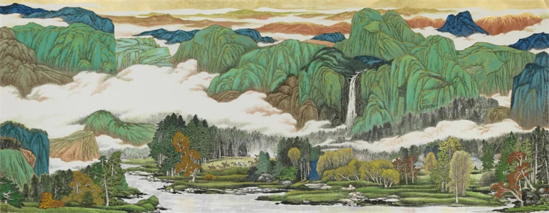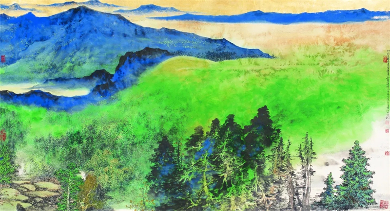 五十當知天命,選擇青綠山水傳統作為努力方向,又有遠游世界之旅,漸漸形成融合東西探索的作品,曾在亞洲、歐洲、美洲各地展覽,有了一些領會,現在挑出百幅作品,回報祖國、回報鄉親。