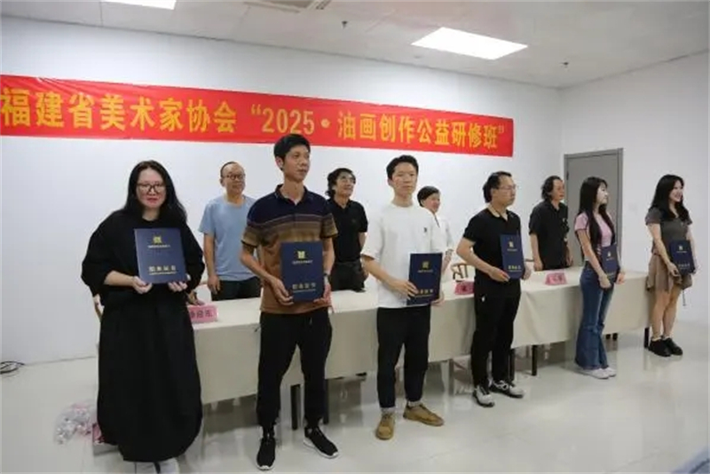 最后,出席結業式的領導、嘉賓為學員們頒發結業證書,并合影留念。此次福建省美術家協會“2025?油畫創作公益研修班”的成功舉辦,為福建油畫事業注入了新的活力。