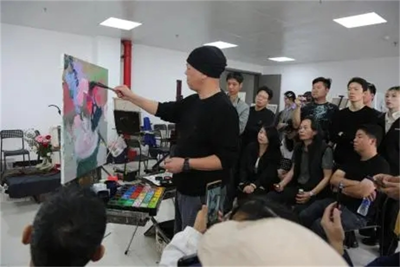 研修過程中,各位教師充分發揮專業優勢,帶來了一系列精彩的講座與示范。張立平主任開展講座并進行油畫示范,同時認真點評學員作品,給予針對性指導;趙九杰老師通過講座及示范,分享創作經驗,與學員積極互動;羅禮平院長以《美術創作與學術素養》為主題進行講座,并對學員作品進行點評,提升學員的學術認知與創作水平;陳明華老師在講座及示范中,展現獨特創作技巧,讓學員受益匪淺;林昌輝老師帶來《淺談油畫創作中物象的解構、重構與建構的綜合應用》主題講座,并現場指導學員創作,拓寬學員創作思路;王裕亮老師的《福建油畫史》主題講座,讓學員深入了解本土油畫發展脈絡,此外,學員們還觀摩了王裕亮老師的《敘事之外》個展,收獲頗豐;楊榮孫老師的《心跡一我的油畫之路》主題講座,分享個人藝術歷程,點評學員作品時給予鼓勵與建議;涂啟先老師的《見形見色》主題講座及創作指導,幫助學員提升色彩與造型運用能力;徐強老師的《表現性繪畫(一)》主題講座,與學員深入交流,激發學員創作靈感。中國美術家協會油畫藝委會副主任賀丹教授蒞臨現場并點評學員作品,為研修班增添了學術活力。