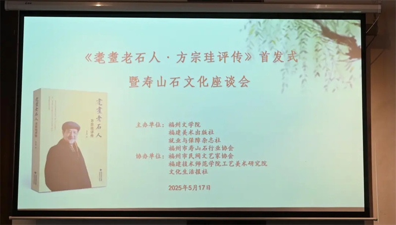 5月17日上午,《耄耋老石人?方宗珪評傳》首發(fā)式暨壽山石文化座談會(huì)在福州文藝家之家成功舉辦。活動(dòng)匯聚文化文學(xué)界、工藝美術(shù)界、出版?zhèn)髅浇绲榷囝I(lǐng)域的專家學(xué)者,共同探討壽山石文化的傳承與發(fā)展,致敬“壽山石文化泰斗”方宗珪先生的藝術(shù)人生。