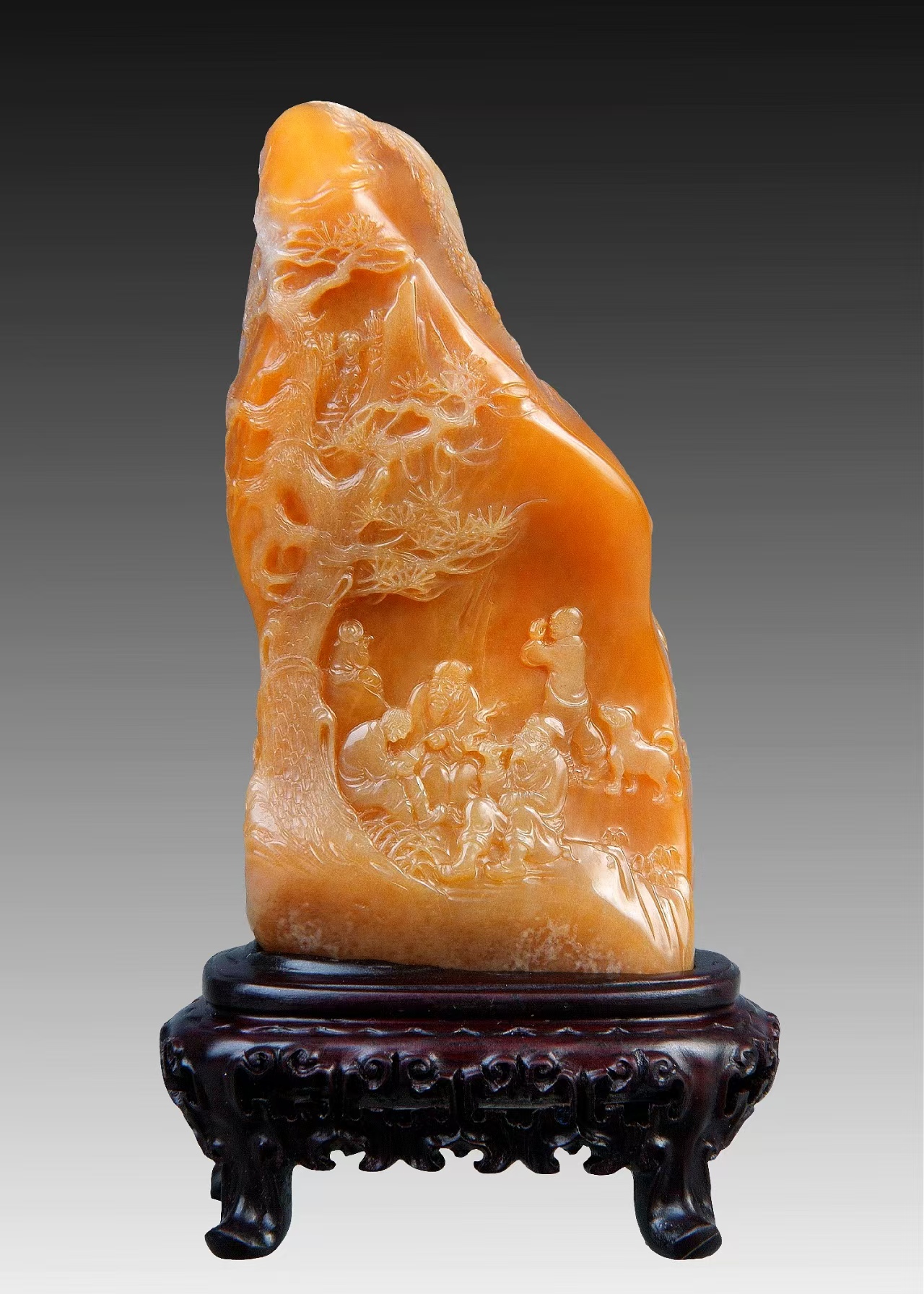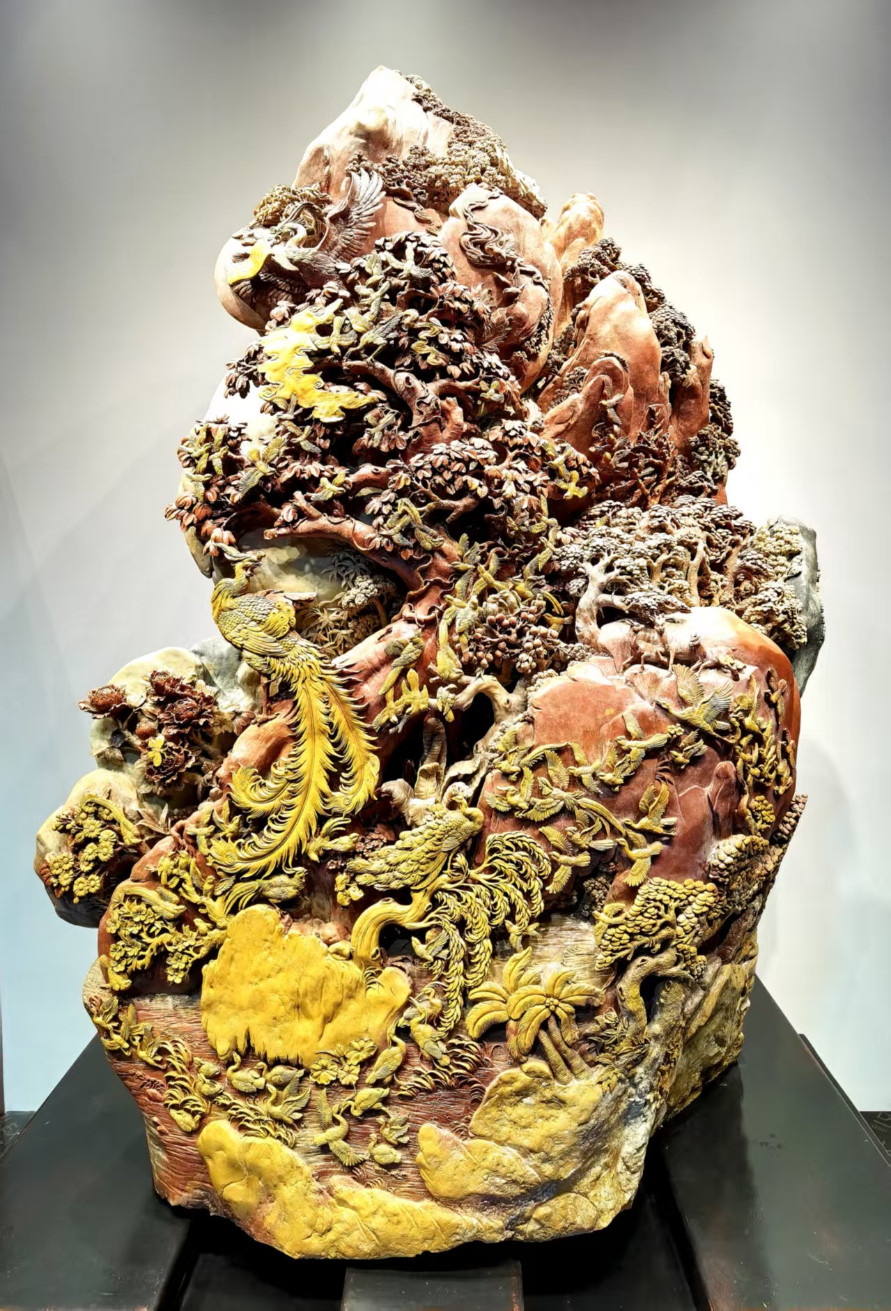 中國工藝美術大師、福州市壽山石行業(yè)協會會長陳禮忠倡導“讓石材說話”,視天然肌理為“大地億萬年寫給人類的信”。其創(chuàng)作注重保留原石鑿痕,強調“天人共創(chuàng)”的東方哲學。陳禮忠言道,“我們要做的不是強行雕刻,而是幫石頭完成它自己的表達,因為它們見證著季節(jié)更迭的聲音,這些對自然生命的共鳴以及原石凹凸的印記,能使作品更有感染力?!?/p>
