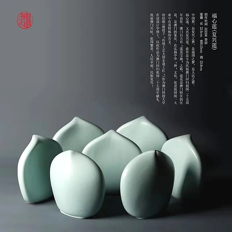 廣東省工藝美術大師徐結根展出了《聽 觀照》等一系列汝窯作品,釉質溫潤如玉,呈現出獨特的“單色”美感。這些汝窯工藝體現了傳統工藝“守正創(chuàng)新”的思路,在守住天青釉色與極簡美學等核心技藝和文化基因的基礎上,融入現代生活場景。徐結根表示,“作品在茶器、酒具等設計中,以傳統為根,通過設計語言和功能革新,讓老手藝兼具東方韻味與現代實用性,贏得年輕人喜愛?!?/p>
