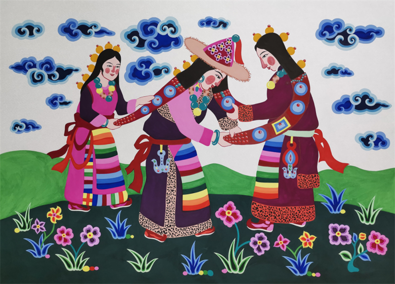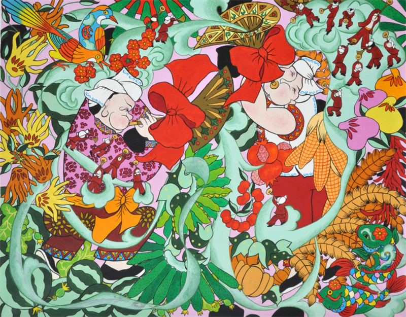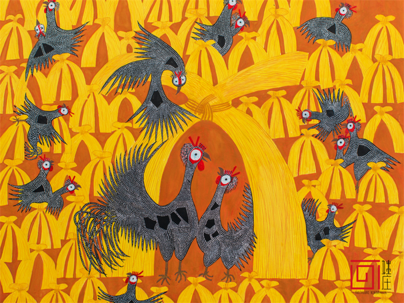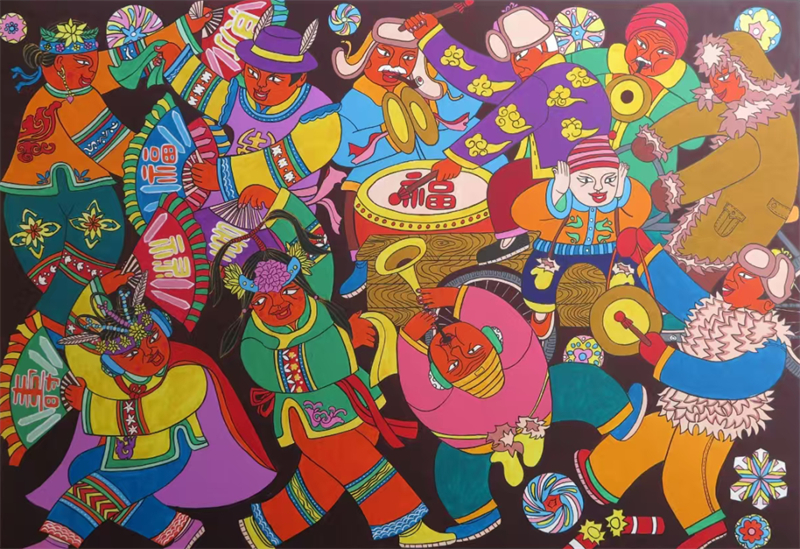 廣東龍門農民畫結合水墨畫、水彩畫、油畫的表現形式,大膽運用夸張變形的藝術手法,以濃墨重彩渲染人們豐富多彩的勞動和生活;福建龍海農民畫以夸張的人物造型、鮮艷的色彩和時空自由的構圖著稱,題材涵蓋農業生產、漁業活動和節慶習俗等;青海湟中農民畫以漢、藏、土族等多民族文化為背景,吸收剪紙、刺繡、堆繡、唐卡、皮影等傳統技藝,注重整體意境表達;廣西三江農民畫源于唐代“侗彩繪”,以其題材鮮明、造型夸張、色彩艷麗著稱,集中反映侗族人民生活習俗、社交活動、節日慶典的真實畫面;河北辛集農民畫在技法上博采冀中剪紙、年畫、印染甚至建筑瓦當等藝術特點,畫面大膽設色,艷麗凝重,裝飾性強;天津北辰農民畫吸收了剪紙、刺繡、草編、木板年畫等民間藝術精華,同時融入北辰人質樸、率直、熱情、幽默的性格;遼寧莊河農民畫從上世紀50年代的墻壁畫、70年代的莊河農民版畫演進而來,創作過程中把民間剪紙、皮影、雕刻、年畫等藝術元素運用其中,具有強烈的視覺沖擊力;湖北黃岡農民畫從刺繡、剪紙、建筑、泥塑、皮影等傳統習俗中汲取養分,將門神、中堂畫、竹筆畫、窗花等元素融入創作,形成了獨特的藝術風格……中國農民畫憑借鮮明的視覺風格、深厚的鄉土文化底蘊和真摯的情感表達,在國際上贏得了關注、欣賞和一定的市場,是中國文化“走出去”的成功案例。