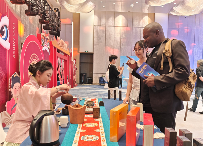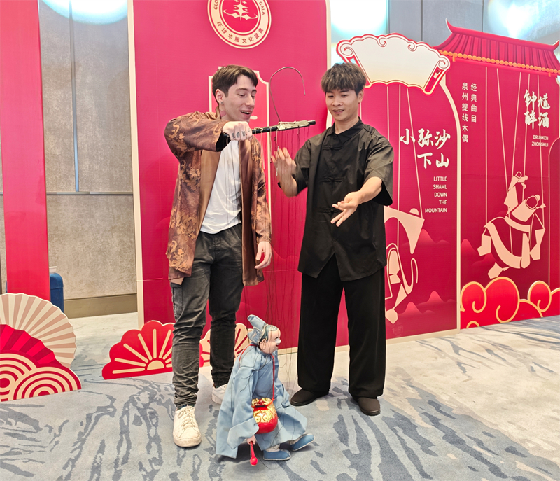 此次活動(dòng)特設(shè)茶藝、泉州非遺、華服體驗(yàn)及鄉(xiāng)村振興展銷(xiāo)四大展區(qū),嘉賓們興致盎然地品鑒香茗、體驗(yàn)提線木偶非遺技藝、試穿精美華服,通過(guò)沉浸式互動(dòng)領(lǐng)略“世遺之城”的文化魅力。