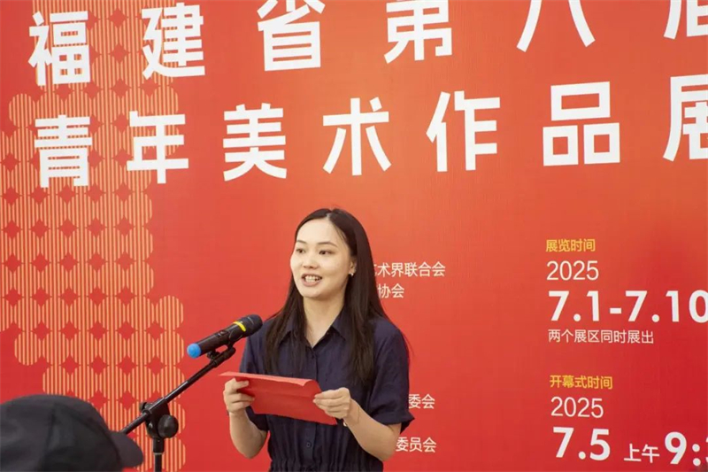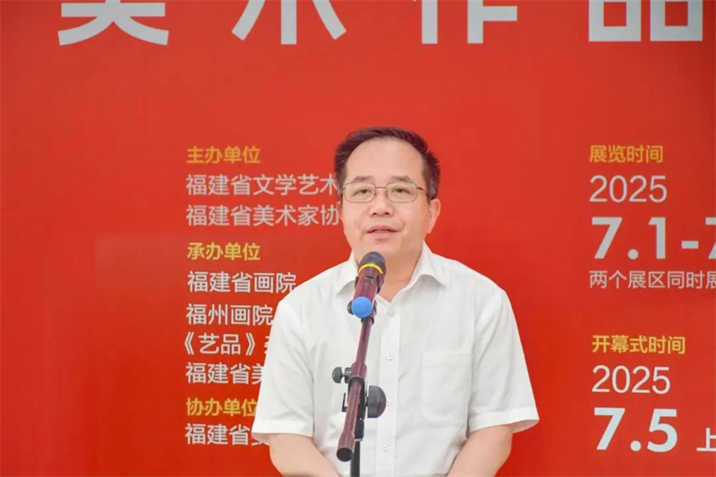 7月5日上午,由福建省文聯、福建省美術家協會主辦,福建省畫院、福州畫院、《藝品》雜志社、福建省美協青年藝委會承辦,福建省美協理論委員會協辦的“紀念抗戰勝利80周年——福建省第八屆青年美術作品展”在榕開幕。省政協原副主席、省文聯原主席張帆,福建省文聯黨組書記、副主席、書記處書記李東河,中國美術家協會副主席、省文聯黨組成員、副主席、書記處書記、省美協主席王來文,省文聯黨組成員、副主席、書記處書記曾章團,閩籍著名藝術評論家、策展人高嶺,省美術家協會主席團在榕成員趙勝利、張永海、楊東平、郭輝、張劍,福建師范大學美術學院院長羅禮平等嘉賓和主承辦單位負責人出席開幕式。
