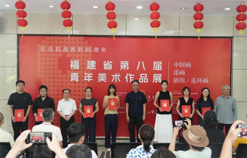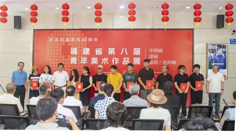 開幕式上舉行了“紀念抗戰勝利80周年——福建省第八屆青年美術作品展”頒獎儀式。張帆、李東河、王來文為一等獎作者頒獎。