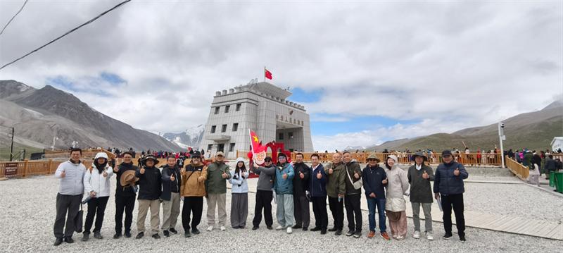 19日,采風(fēng)團抵達喀什地區(qū)塔什庫爾干塔吉克自治縣(簡稱塔縣)紅其拉甫國門,哈爾濱師范大學(xué)美術(shù)學(xué)院副院長趙龍目睹年輕戰(zhàn)士“用青春丈量國境線的身影,成為最震撼人心的畫卷”。福建省美協(xié)副主席趙勝利在紅其拉甫看著戍邊戰(zhàn)士和高揚的國旗,“愛國之情油然而生”,深感這不僅是“地理的跨越”,更是一次“精神的洗禮”。新疆生產(chǎn)建設(shè)兵團美協(xié)主席萬里明則期待用畫筆“捕捉雪山下的生活氣息,把邊疆人民的精神風(fēng)貌融入山水畫中”,這份期待在采風(fēng)團美術(shù)家們筆下壯麗的邊塞風(fēng)光寫生中得以實踐。