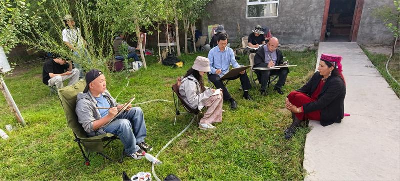 14日,在阿圖什無花果小鎮(zhèn)的采風(fēng)寫生時,中國國家畫院原副院長于文江感受到柯爾克孜村民“都很松弛、很快樂地在這方土地上生活”,這種幸福感染著美術(shù)家。遼寧省美協(xié)副主席孫洪利一路目睹柯爾克孜、維吾爾、塔吉克等民族“和諧共處、團結(jié)奮進的生動場景”,認(rèn)為“民族團結(jié)是新疆最美的風(fēng)景”。