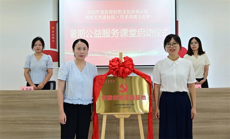 啟動儀式上還進行了“龍巖學院傳播與設計學院黨建創新實踐基地”和“黨員駐點工作室”的揭牌,傳播院黨委與錦繡社區黨委同步簽署了黨建共建合作協議。雙方將在接下來的一年中,根據“資源共享、優勢互補、共促發展”的原則,深化資源整合,凝聚校社合力,創新"紅色文化傳承+服務"模式,為社區青少年打造特色課堂,提升紅色文化課程的專業度與趣味性,推動閩西紅色基因與傳統文化在新時代青少年中的創造性轉化、創新性發展。