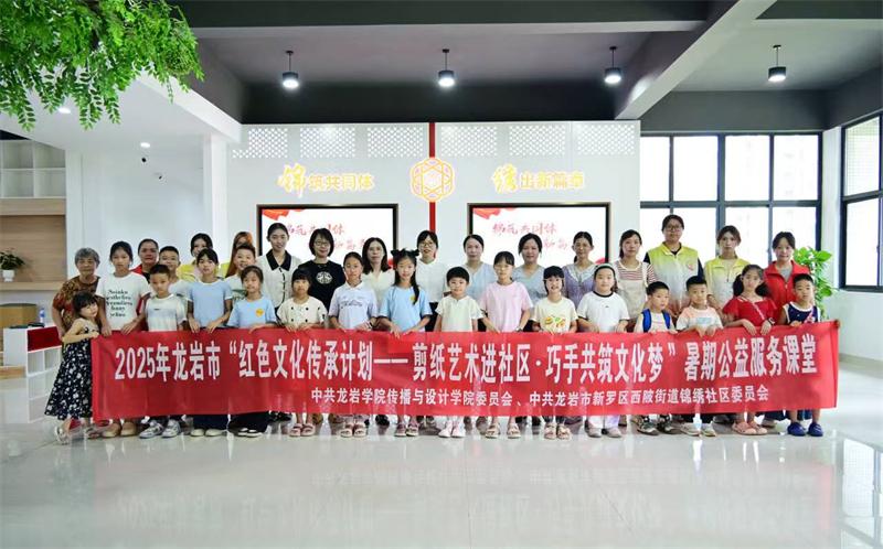 東南網藝術頻道訊(通訊員 朱荔婷)7月31日,龍巖學院傳播與設計學院“紅土傳承·非遺煥新”實踐隊赴新羅區西陂街道錦繡社區開展為期15天的“紅色文化傳承計劃—— 剪紙藝術進社區·巧手共筑文化夢 ”社會實踐活動啟動儀式。傳播與設計學院黨委書記郭曉云,黨委副書記饒進,錦繡社區黨委書記陳海艷,傳播與設計學院副教授、暑期社會實踐指導老師朱荔婷,來自社區的學員、家長及實踐隊志愿者共計50余人出席了此次活動。