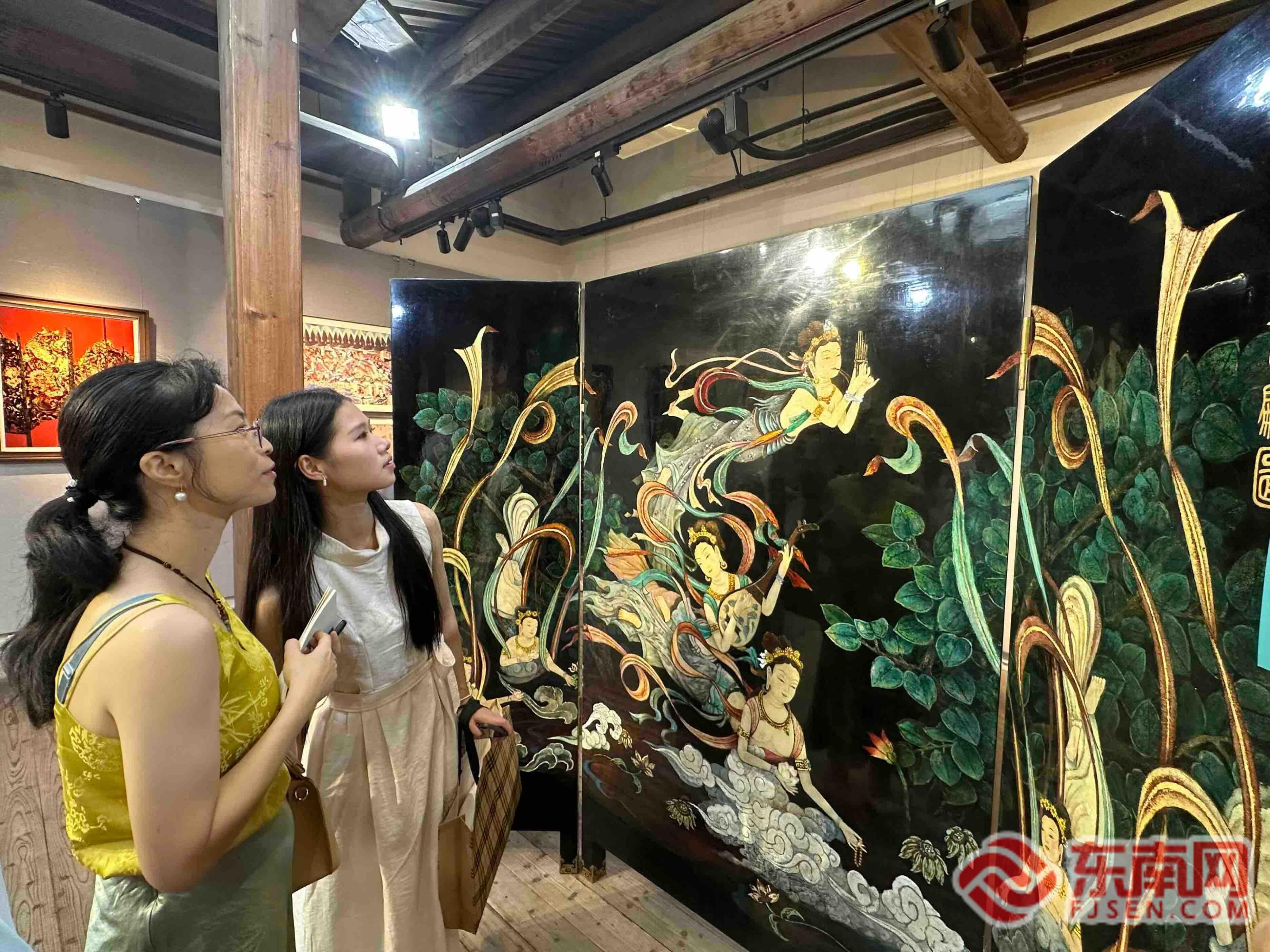 東南網8月15日訊(本網記者 陳楠 文/圖)今日,一場“藝海揚帆——福建省工藝美術大師藝術作品傳承展(第五場)漆髹敦煌專場”在福建省海峽民間藝術館開展。