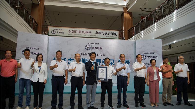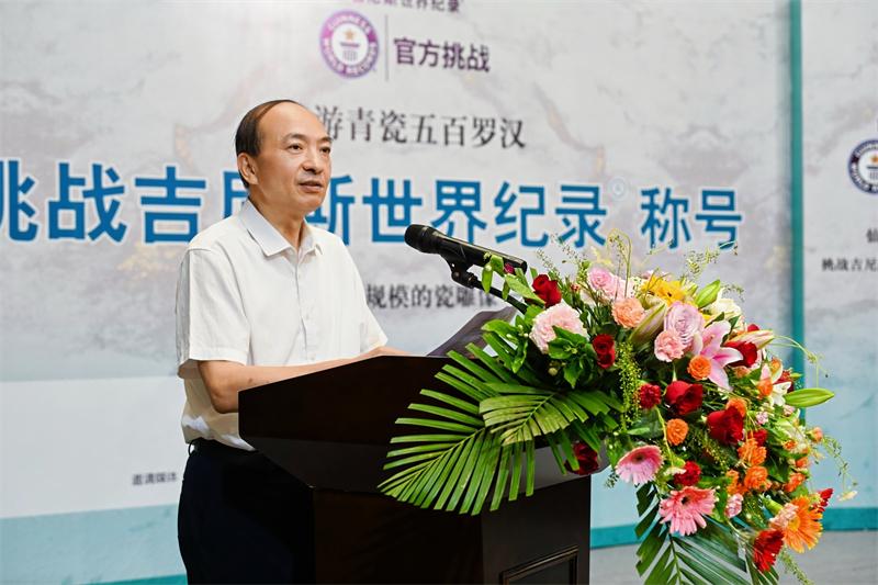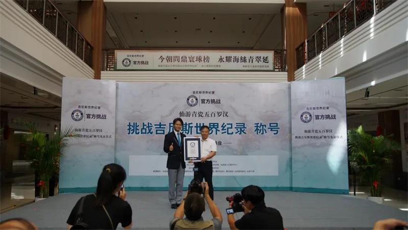 千年窯火淬瑰寶,世界認證載譽來。8月20日上午,在中國古典工藝博覽城,吉尼斯世界紀錄認證官楊紹鵬先生莊重宣布:“仙游青瓷五百羅漢成功挑戰吉尼斯世界紀錄‘最大規模瓷雕像’稱號!”現場頓時掌聲雷動,與會嘉賓共同見證了這一屬于仙游青瓷、屬于中國非遺的高光時刻。