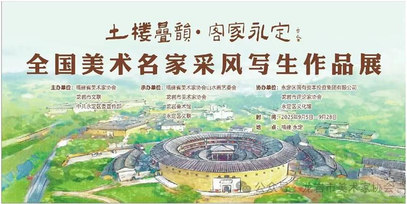 為深度探尋客家文化的精神根脈,展現世界文化遺產永定土樓的獨特魅力,推動美術創作與文化傳承相融合,由福建省美術家協會、龍巖市文聯、中共永定區委宣傳部主辦,福建省美術家協會山水畫藝委會、龍巖市美術家協會、龍巖美術館、永定區文聯承辦的“土樓疊韻·客家永定——全國美術名家采風寫生作品展”在永定區文化館開幕。本次展覽共展出106幅精品力作,每一幅作品皆是藝術家與土樓靈魂對話的結晶。