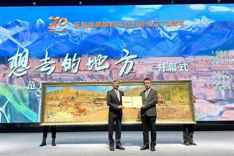 今天上午,我們相聚在新疆美術館,共同見證“想去的地方——范迪安風景油畫展”隆重開幕。這場藝術盛會恰逢新疆維吾爾自治區成立70周年的喜慶時刻,既是中國當代美術與新疆大地的深情對話,更是文化潤疆工程中一曲動人的藝術樂章。